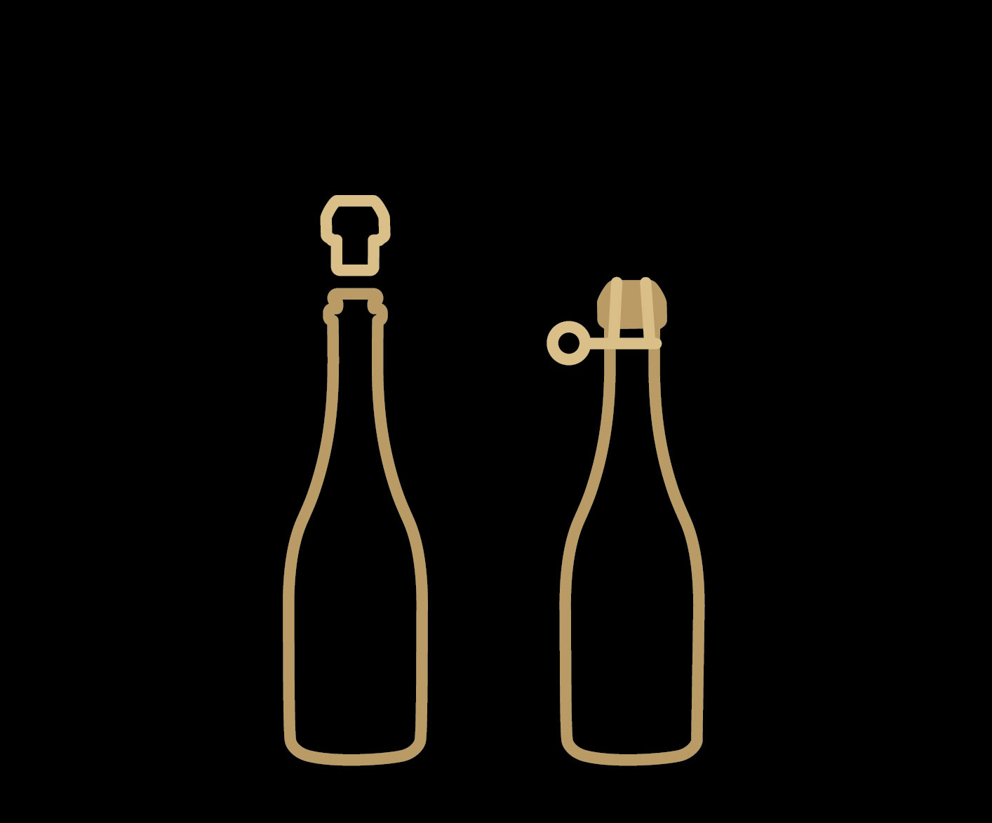 Mit dem pilzförmigen Naturkorken erhält die Sektflasche ihren zweiten und endgültigen Verschluss. Der Drahtverschluss (Agraffe) sichert den Korken in der Flasche, damit er nicht vom Innendruck aus der Flasche herausgedrückt wird.